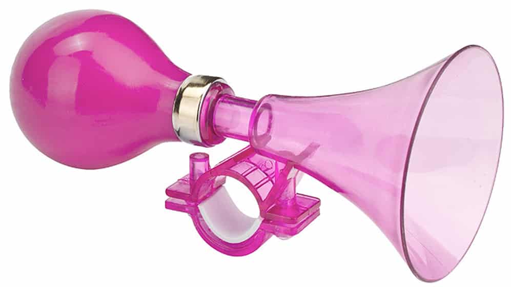 Клаксон насыщенного розового цвета, порадует юных обладательниц велосипеда. Такой аксессуар не только украсит руль, но и предостережет ребенка от дорожных происшествий. Изготовленный из пластика, клаксон легко крепится к рулю и издает громкий звук.
